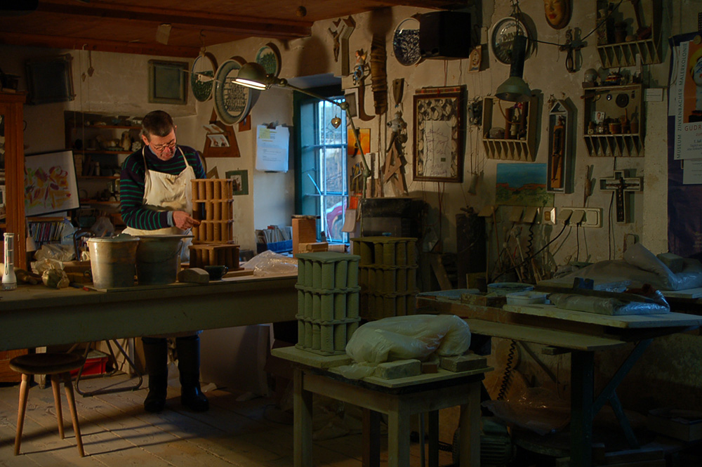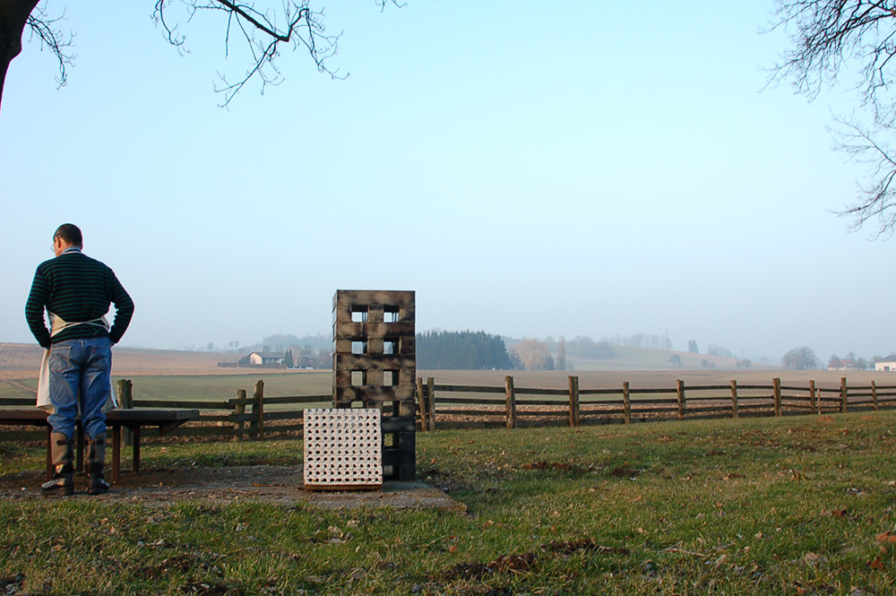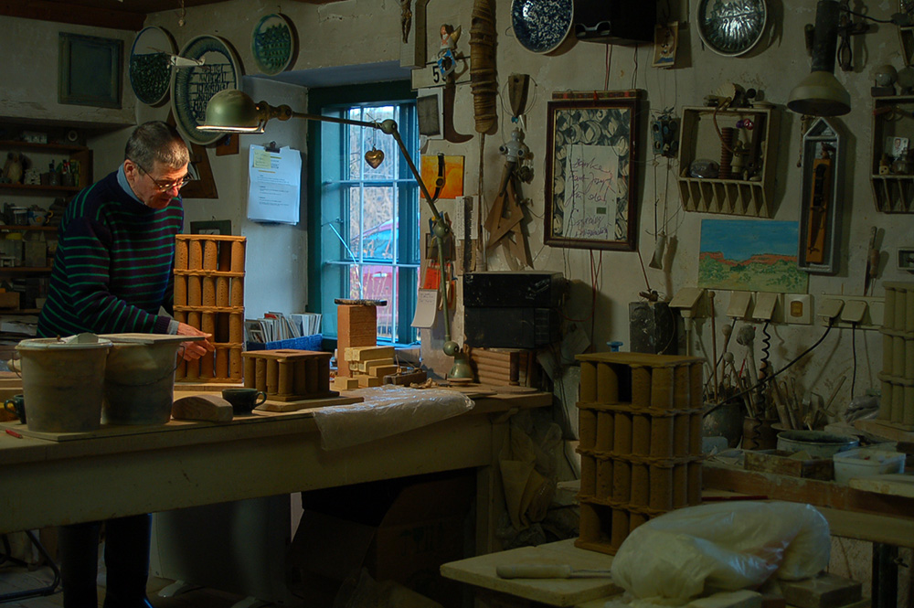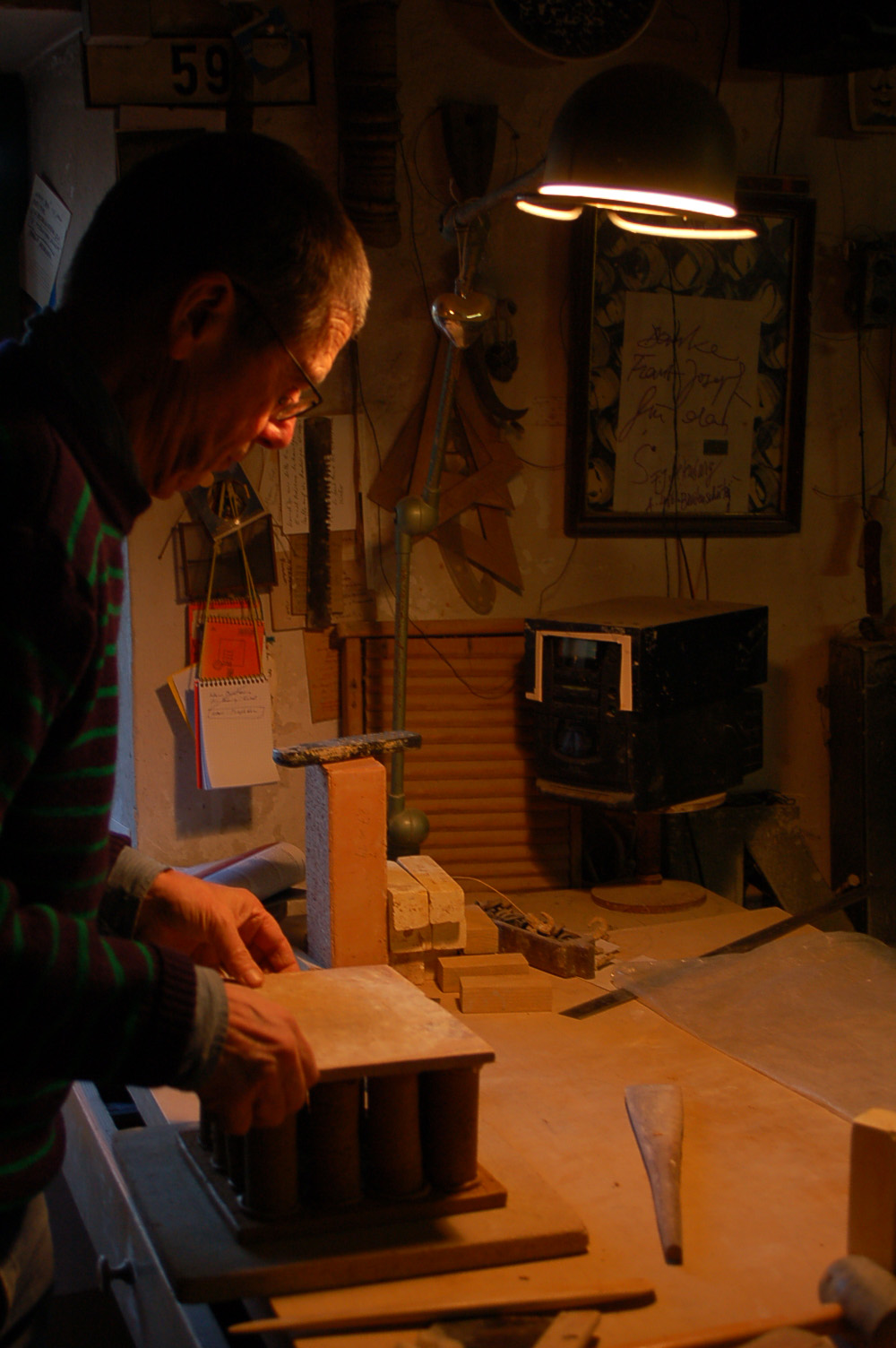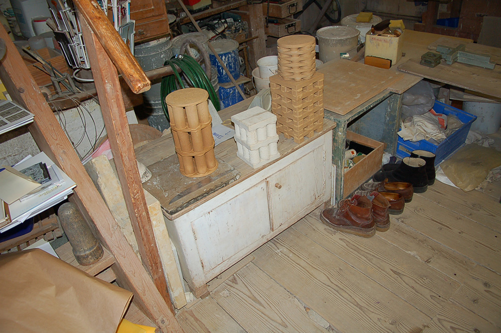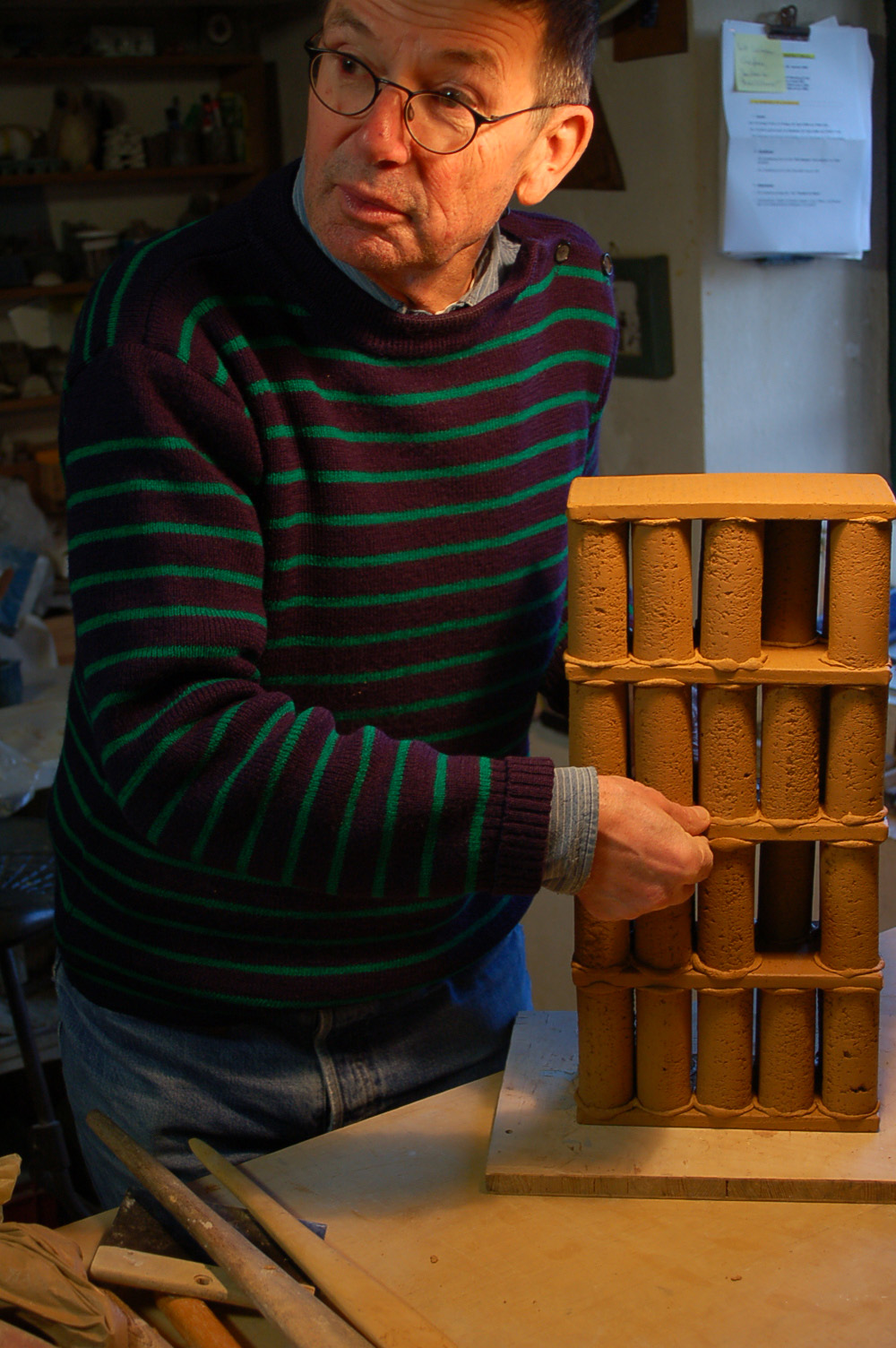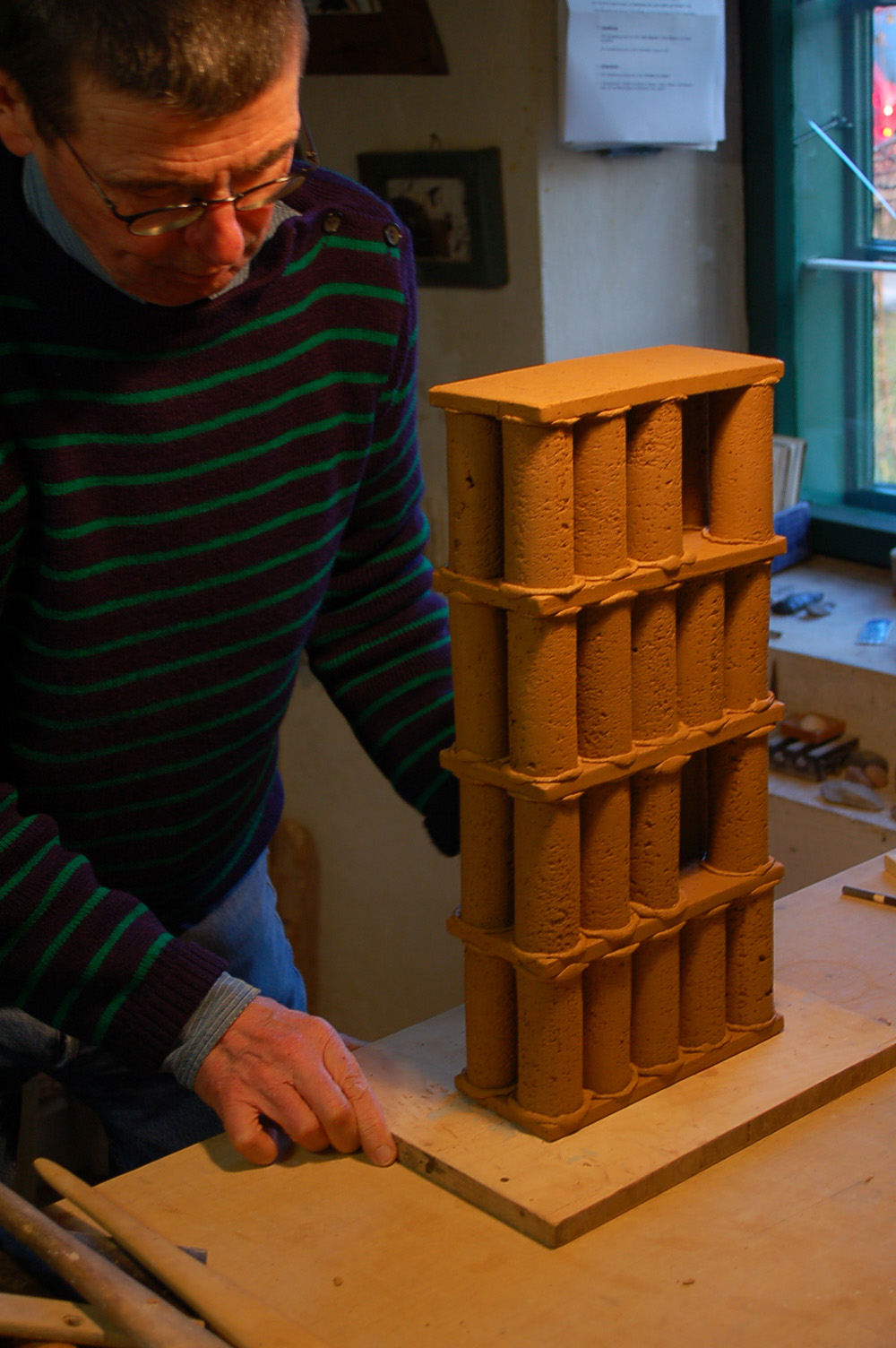 Pragmatischer Hintergrund dieser Skulpturen: „Ich schneide von einem Block Ton Platten herunter. Diese Platten zerschneide ich in Stäbe, aus denen ich meine Skulpturen baue.“