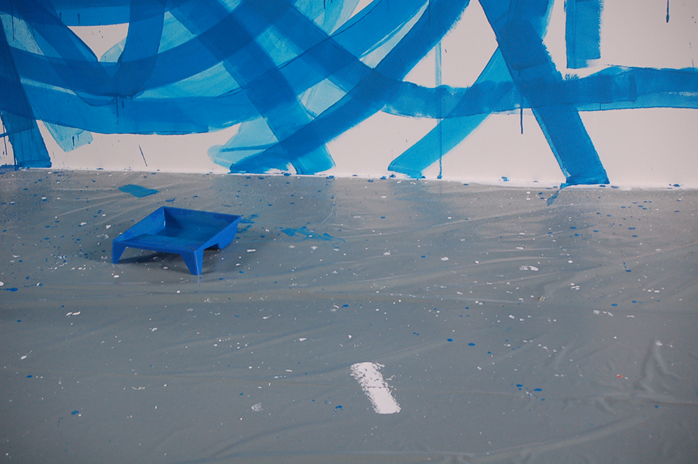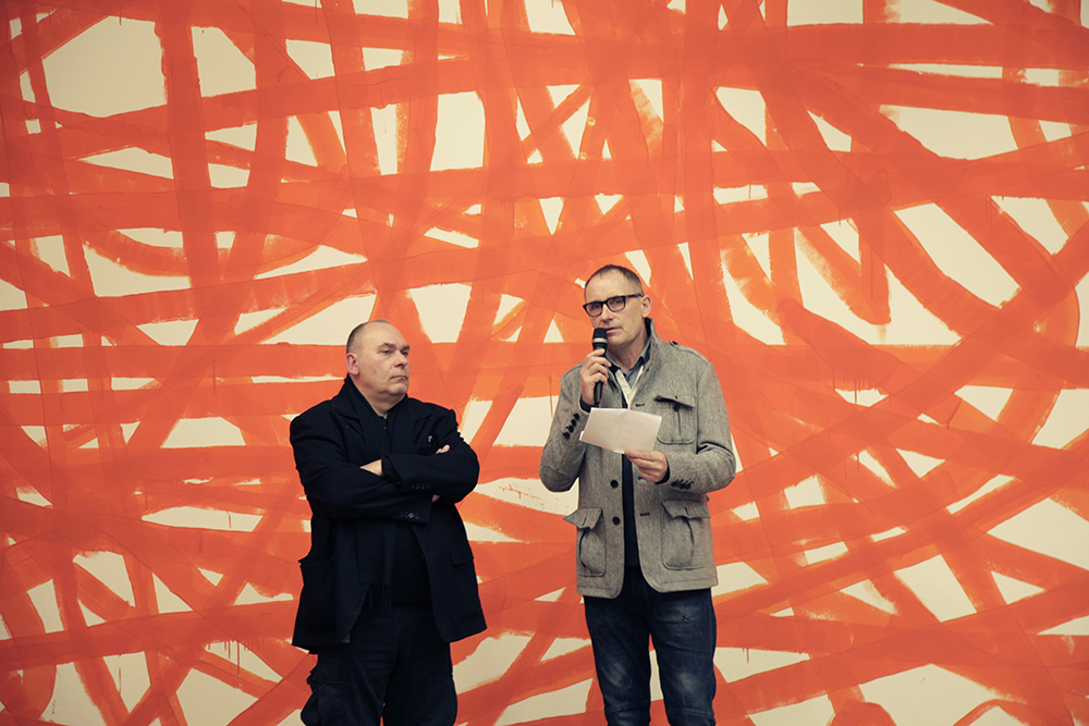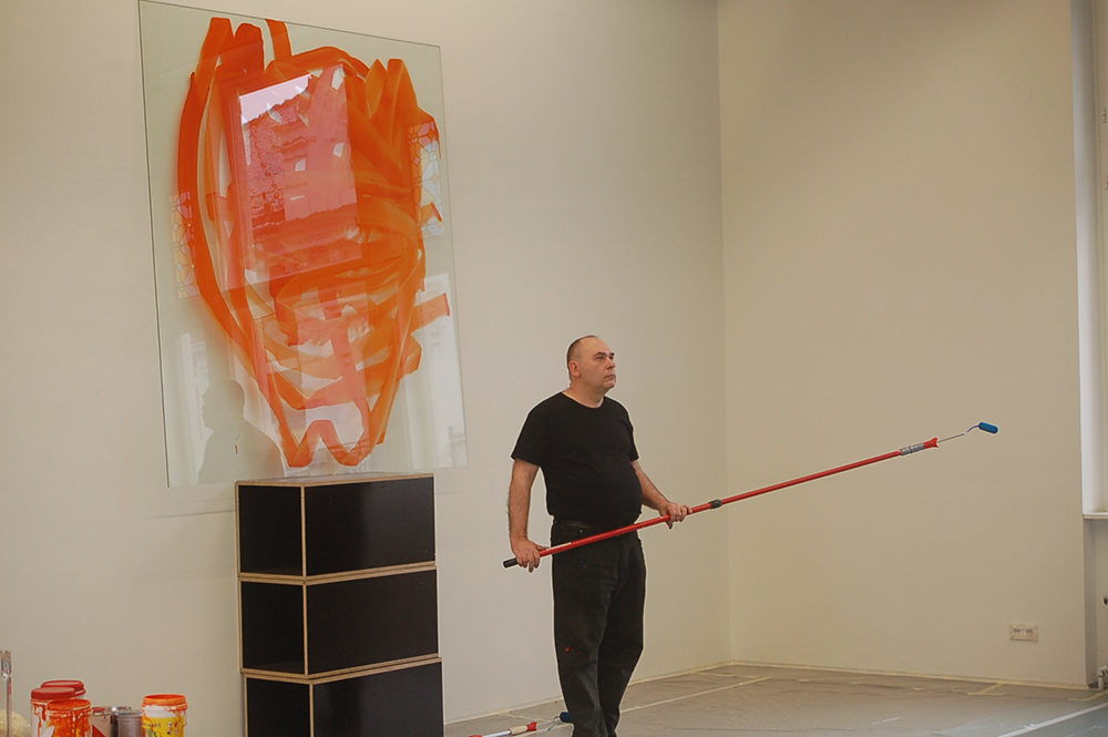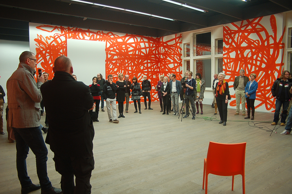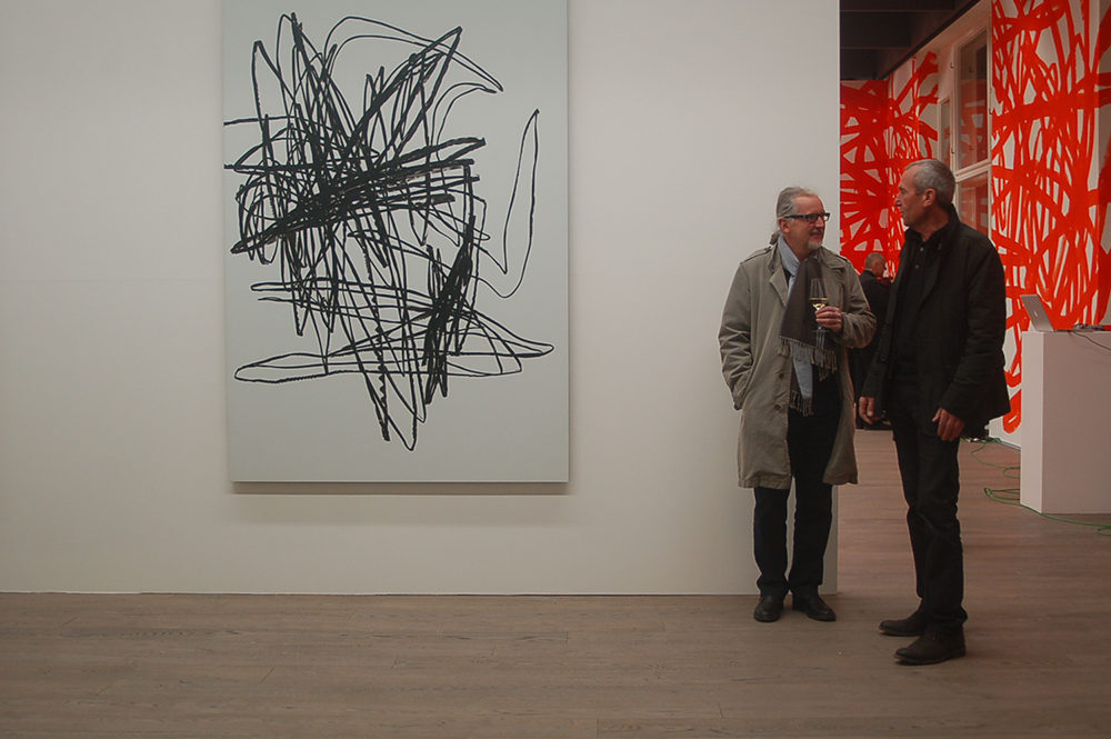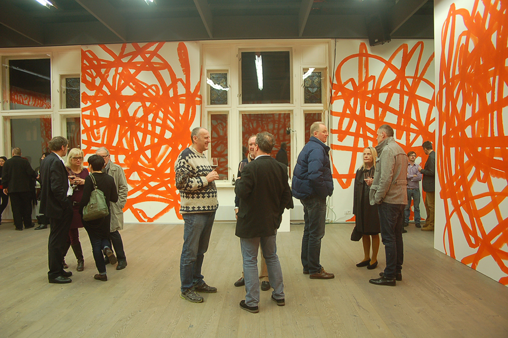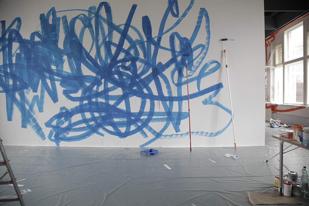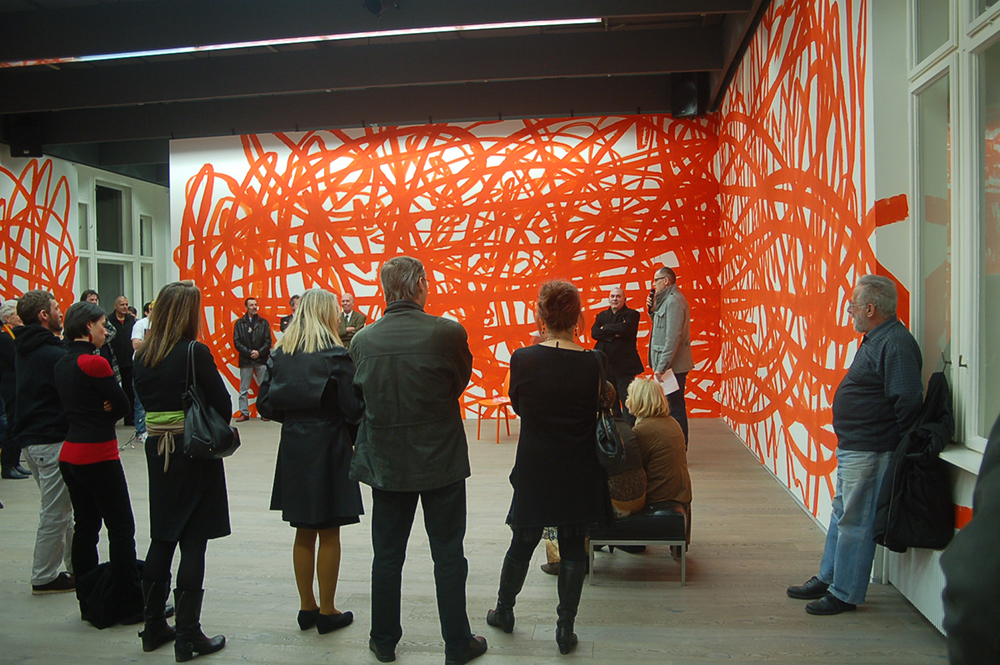 Bei der Vernissage am 21. März 2013 stellte Otto Zitko ein erstes Raumkonzept und seine raumhohe Wandzeichnung vor. Nun verweilt der Wiener Künstler noch einmal in Wels um erneut an seiner Raumzeichnung zu arbeiten.