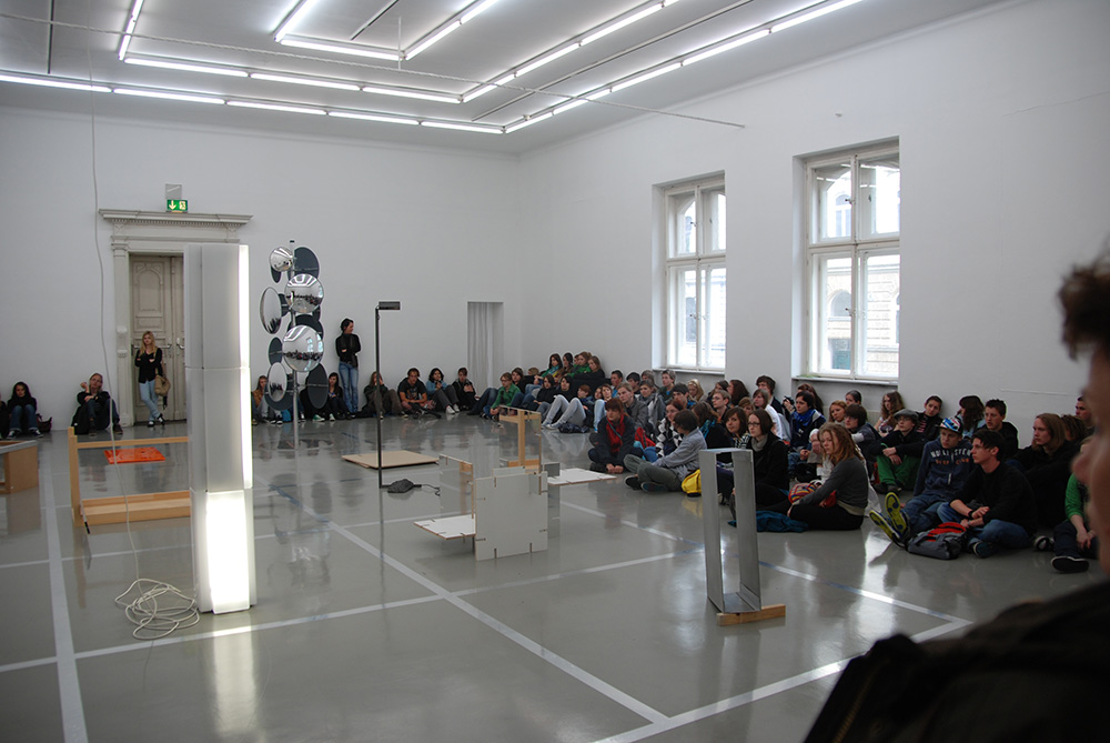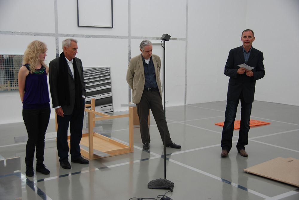 Sepp Auer und Gerold Tagwerker sind einander vor der Einladung zu dieser gemeinsamen Ausstellung noch nie persönlich begegnet. Auers Spektrum, er war viele Jahre Professor für Bildhauerei an der Akademie für angewandte Kunst in Wien, umfasst Möbel, Lampen, Skulpturen, Lichtobjekte, Rauminstallationen. Tagwerkers Oeuvre greift formale, gestalterische, strukturelle und inhaltliche Aspekte der Architektur auf.