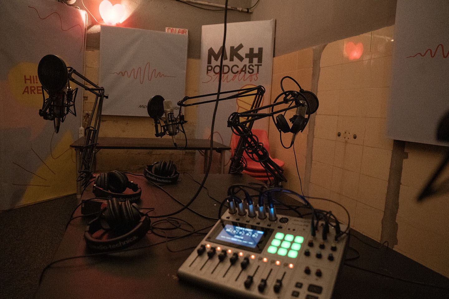 Unser Podcast-Studio steht jungen Medienproduzent für eigene Projekte offen. Mit Platz für bis zu sechs Mikrofone bietet es ideale Bedingungen für Podcasts, Interviews und Gesprächsformate.