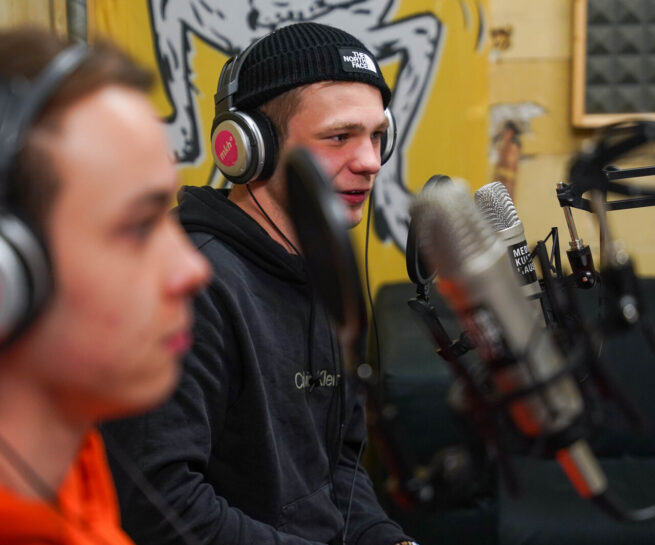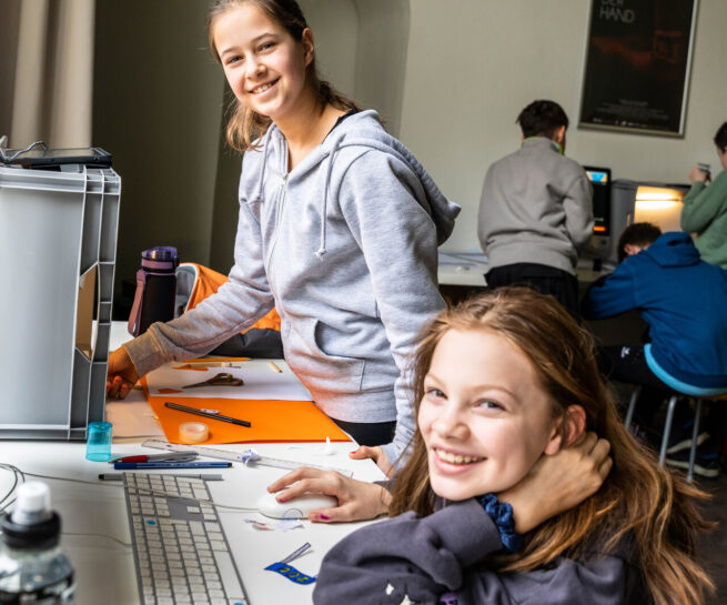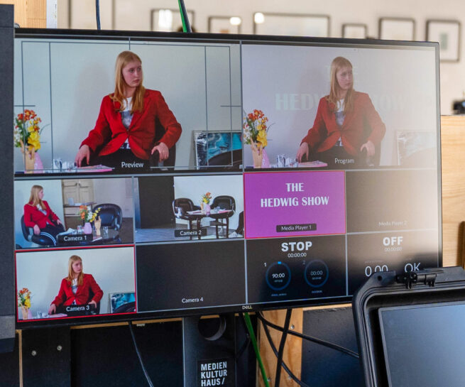 - Es stehen bis zu 10 Stationen mit hochwertigem Equipment zur Verfügung. Somit können auch größere Klassen in Kleingruppen gleichzeitig ihre Filme produzieren. Die fertigen Filme werden spätestens eine Woche nach dem Workshop an die Schule geschickt.